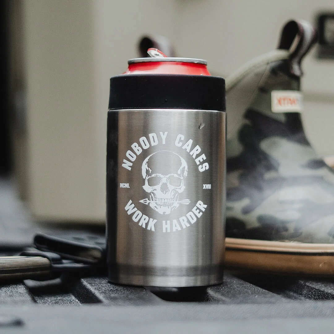 Built for long days, heavy work, and the mindset that never quits. The Nobody Cares. Work Harder. Grizzly Grip Can keeps your drink cold and your focus sharp. The bold message on the outside matches the performance on the inside, giving you a durable, reliable can holder ready for any grind.